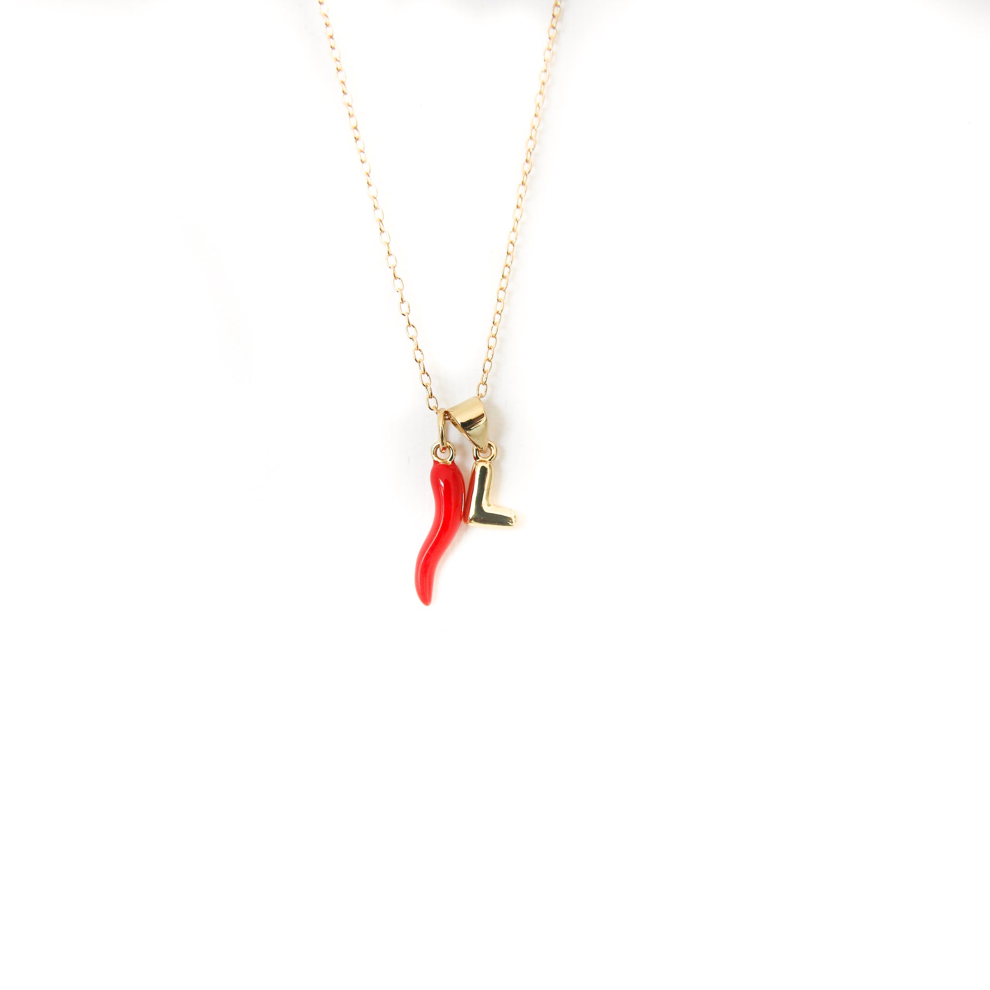 Chili with Tiny Bubble Initial Necklace